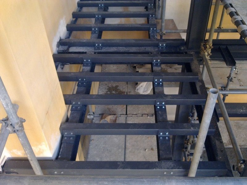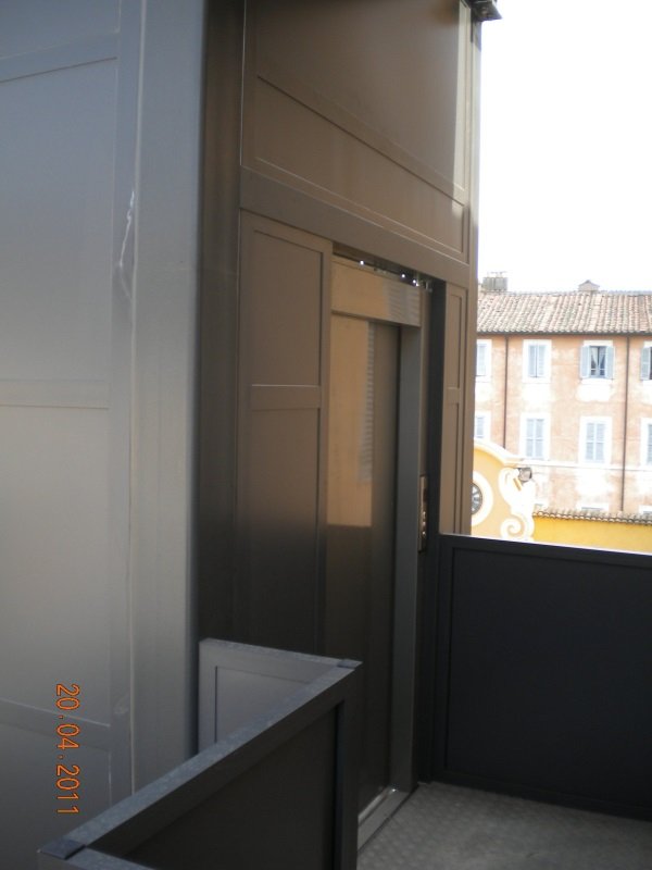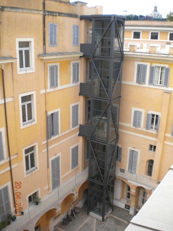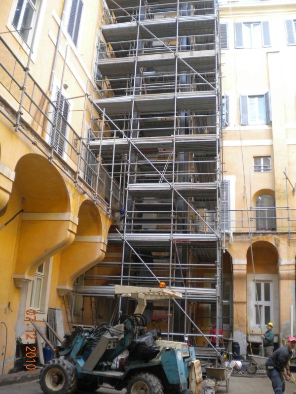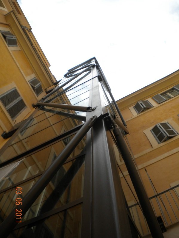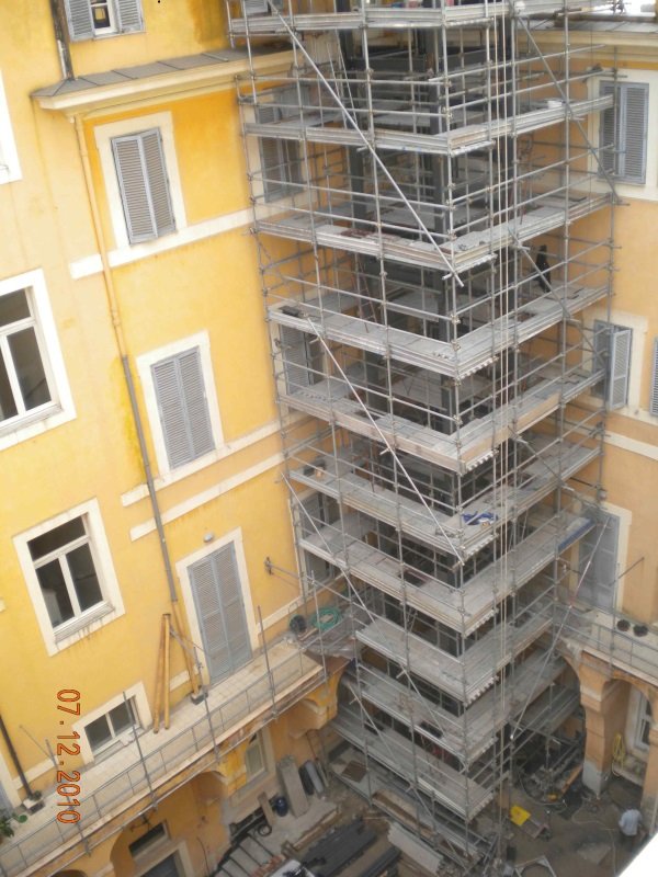 All’interno del cortile dello stabile è stata realizzata una struttura in acciaio per la messa in opera di un ascensore che supera un dislivello di 30ml circa.
